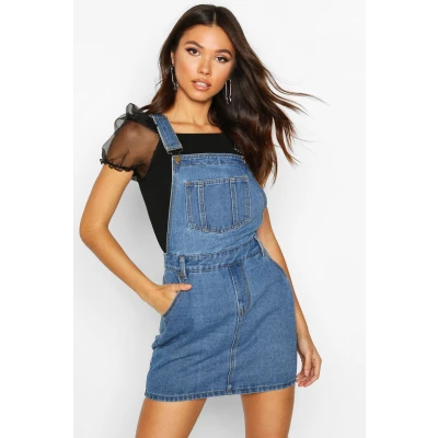 Womens Denim Overall Pinafore Dress - Blue - 2