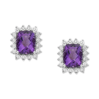 Effy Amethyst (7-1/2 ct. t.w.) & Diamond (1/3 ct. t.w.) Stud Earrings in 14k White Gold