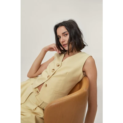 Womens Twill Single Breasted Cropped Vest - Yellow - 4, Yellow