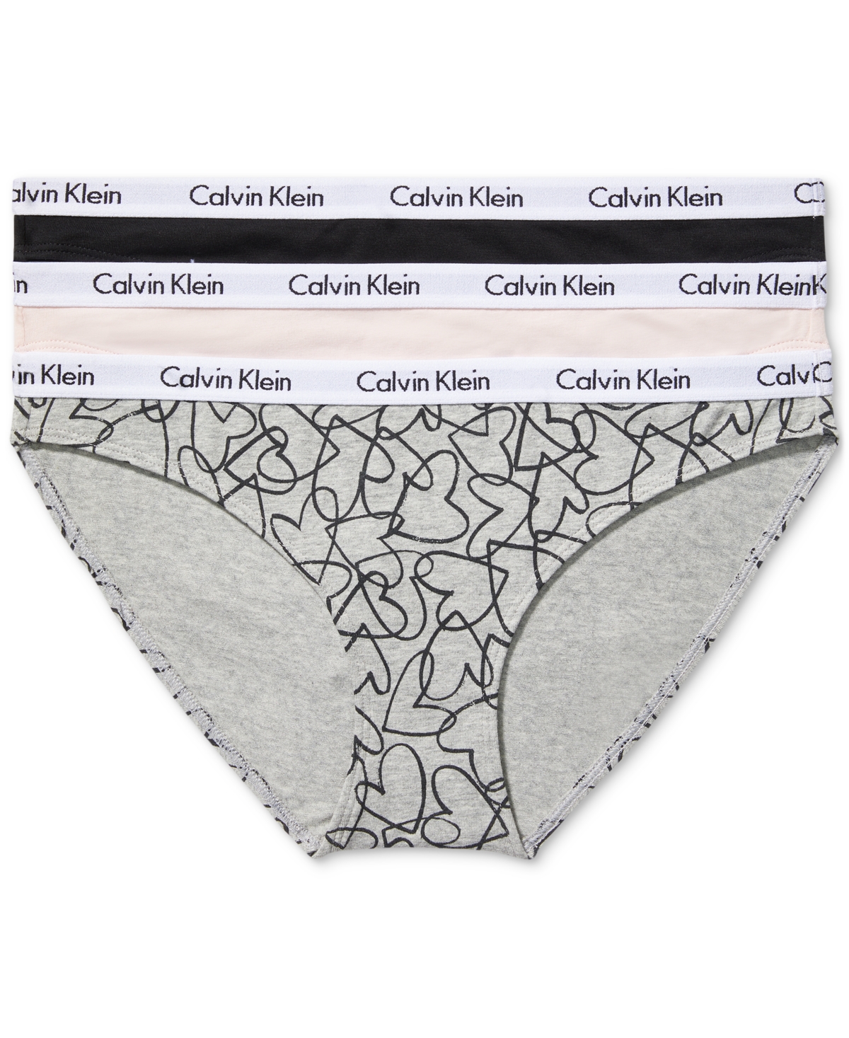 Women's Calvin Klein Carousel 3-Pack Bikini Panty Set - Black/Pink/Grey Heart Print