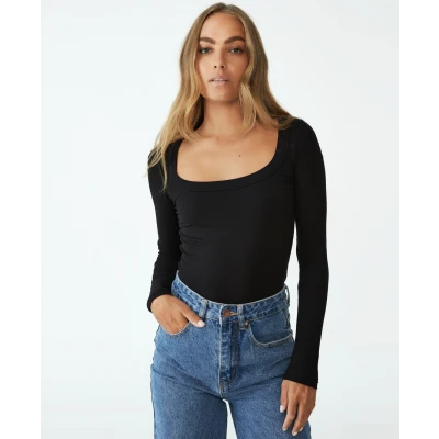 Womens Staple Rib Scoop Neck Long Sleeve Top